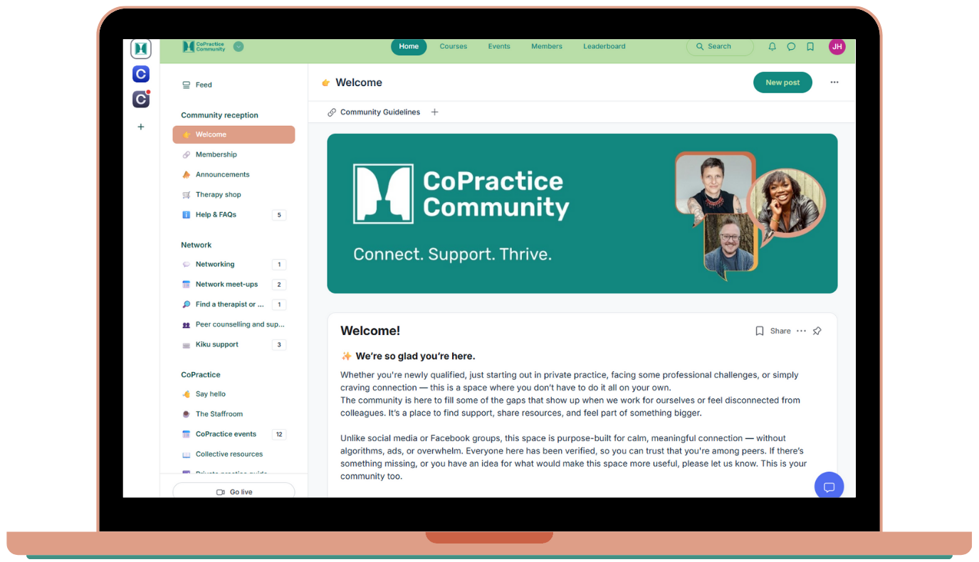 - Many events are the starting point, with members of our CoPractice community able to join follow-up spaces that encourage deeper reflection, exploration and connection.